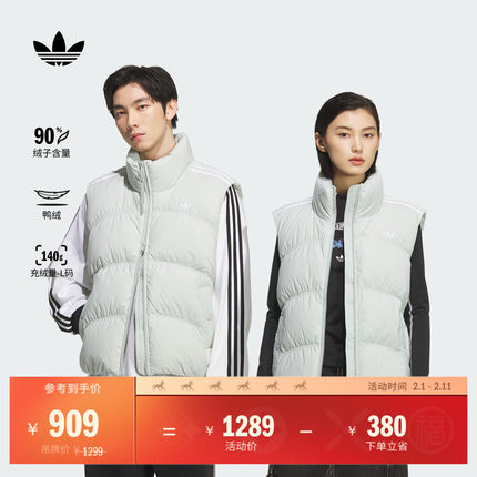 百搭保暖鸭绒羽绒背心马甲男女秋冬 90绒子adidas阿迪达斯三叶草
