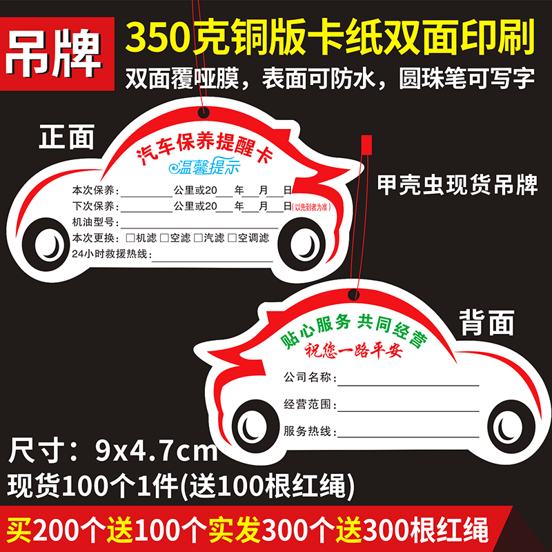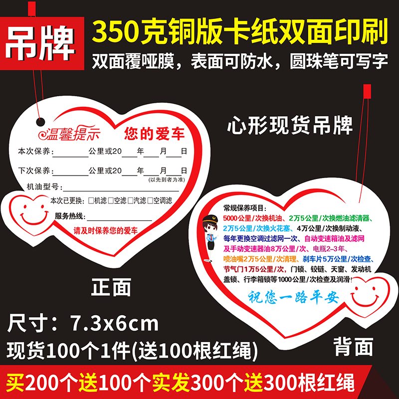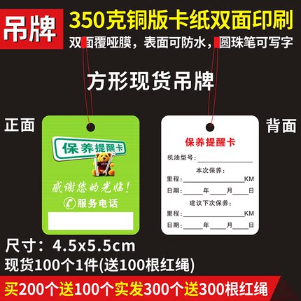 汽车保养提示吊牌挂卡更换机油滤芯时间里程维修记录提醒方形现货