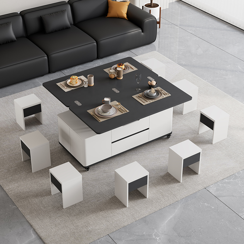 多功能折叠茶几变餐桌升降两用现代简约客厅岩板小户型茶几