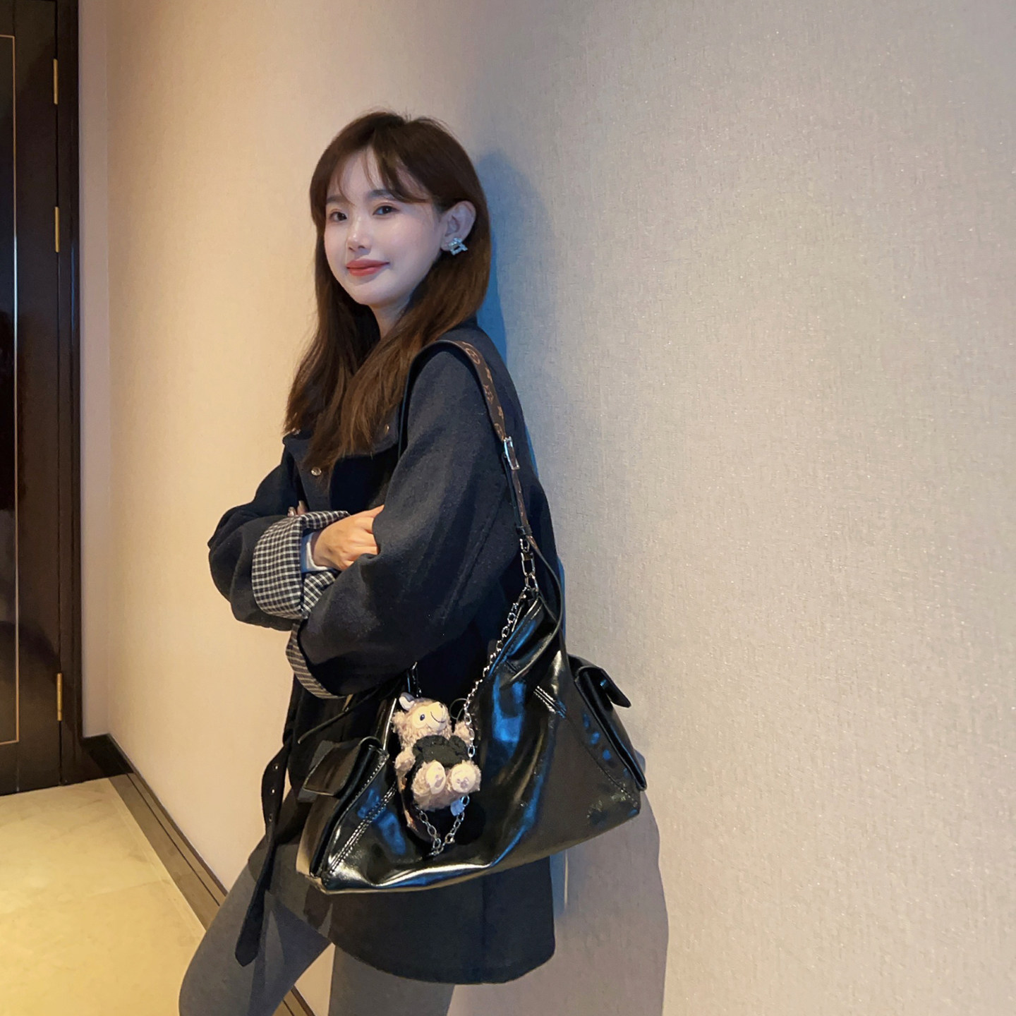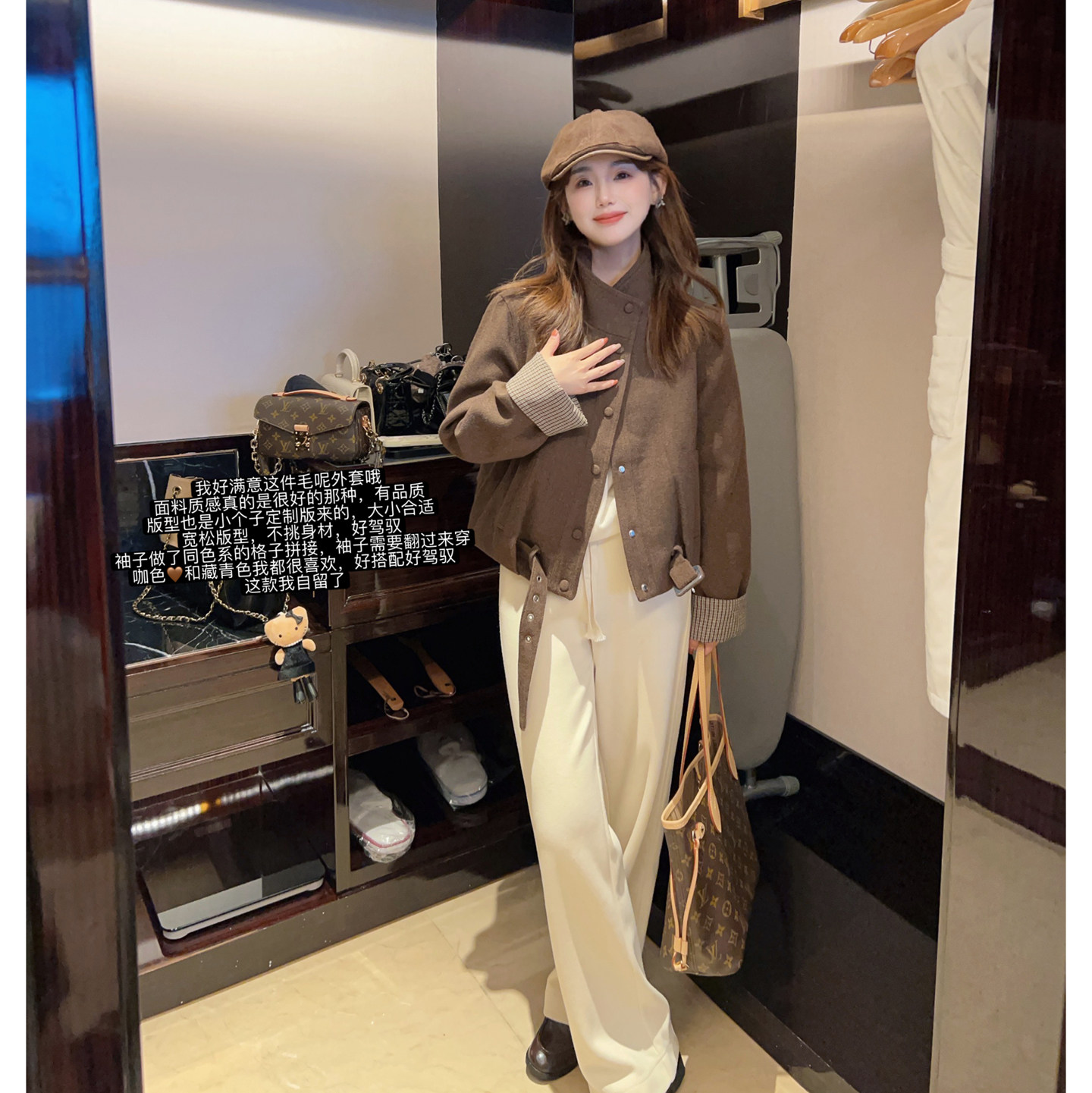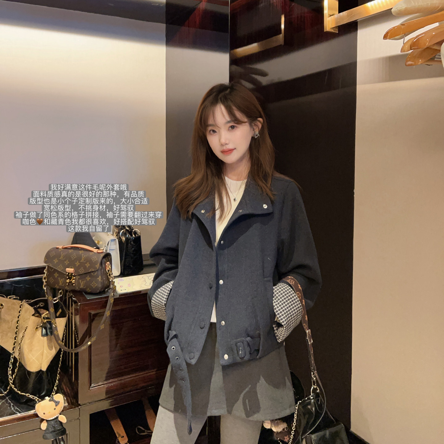 小小家小个子袖子拼接毛呢外套