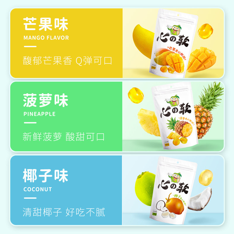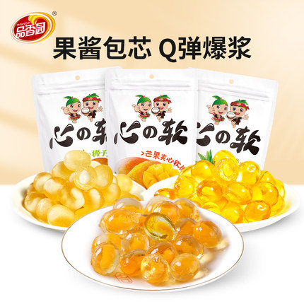 海南芒果夹心软糖180gX3袋品香园水果味QQ糖果小零食喜糖休闲招待