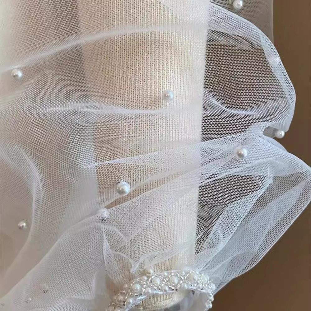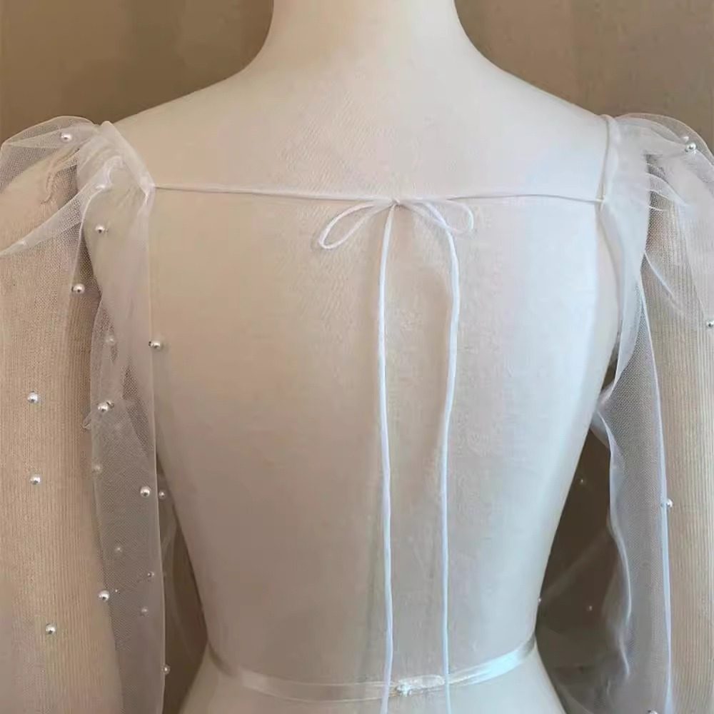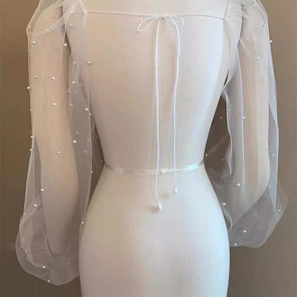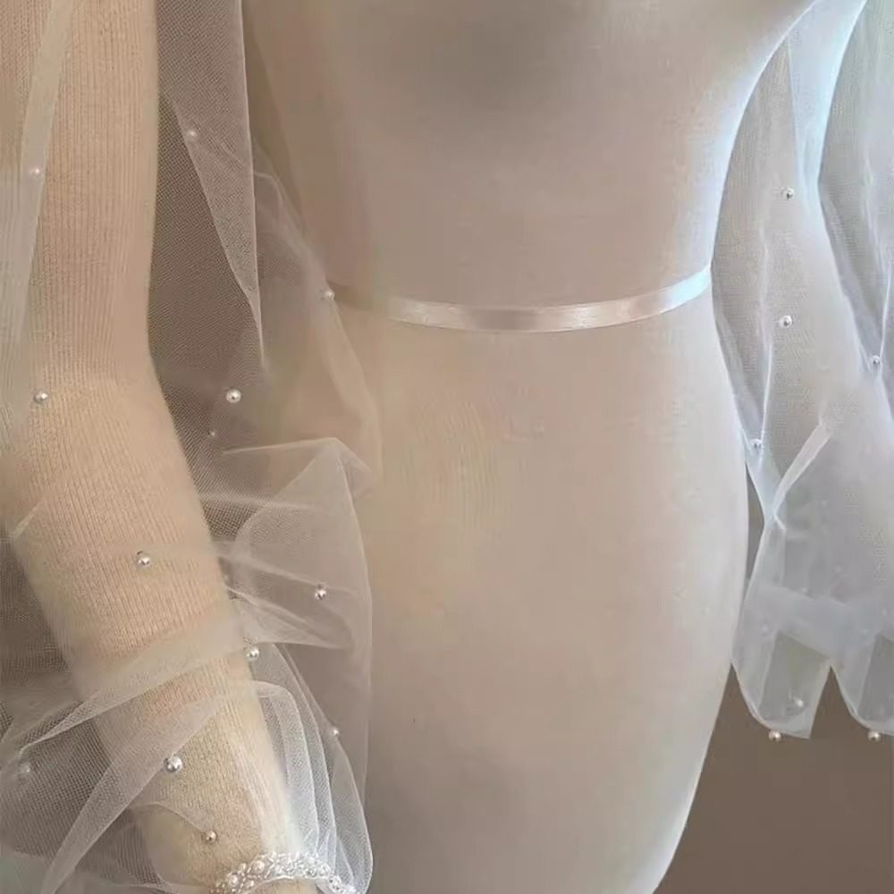 可拆卸婚纱珍珠泡泡袖新娘宽松遮手臂薄纱演出袖套网纱显瘦手套