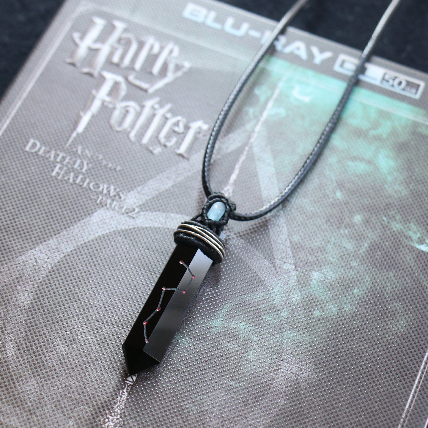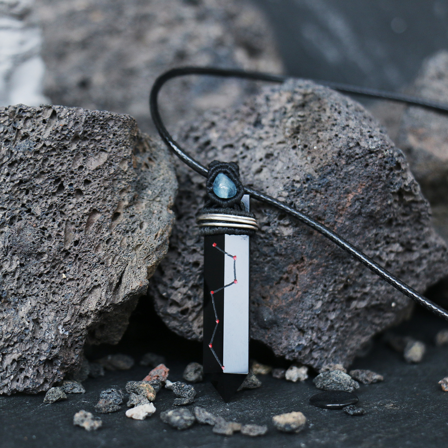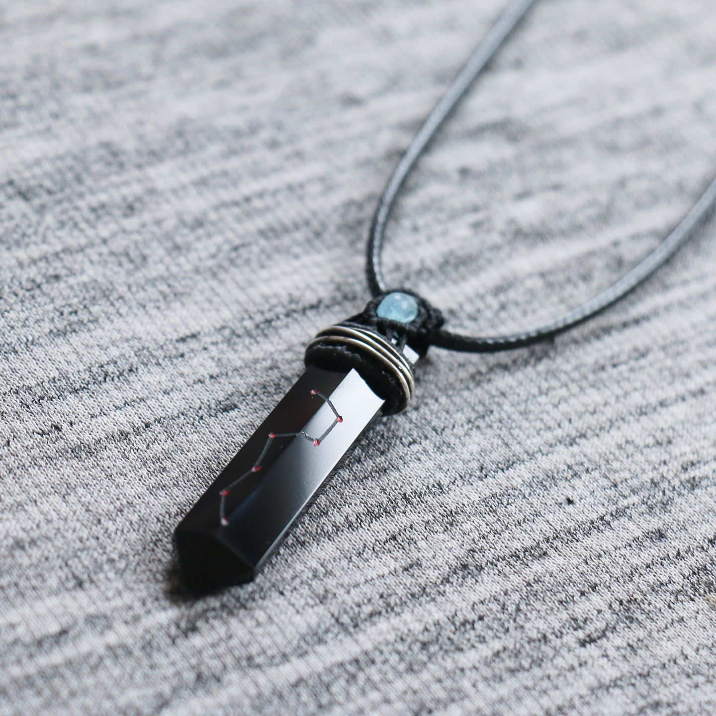 原创天然黑曜石项链男款护身符海蓝宝吊坠女手工道家七星剑挂件