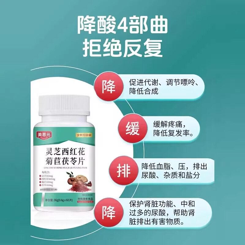 灵芝西红花菊苣茯苓片痛尿酸高下尿酸高尿酸痛石脚趾风肿痛