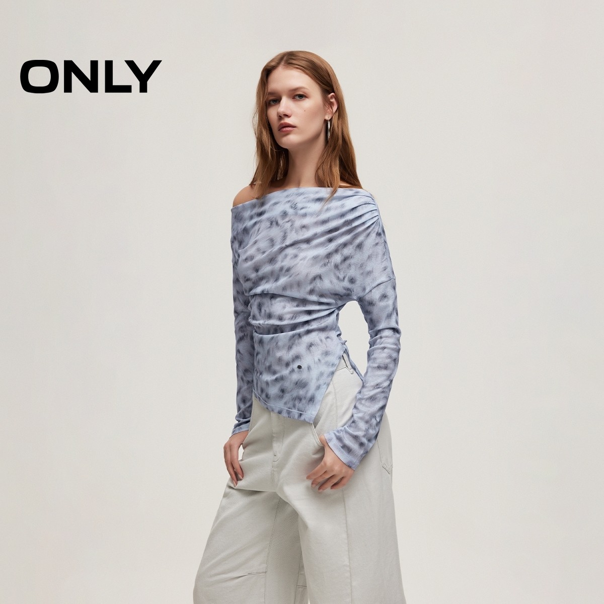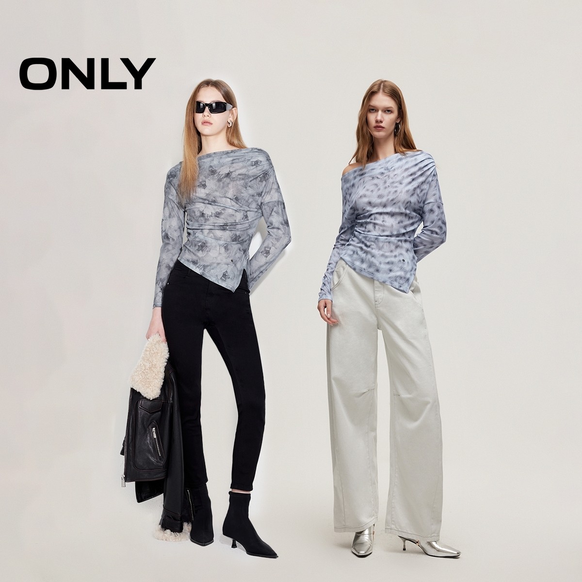 绫致ONLY2025冬季新款性感扎染一字肩修身打底长袖T恤女
