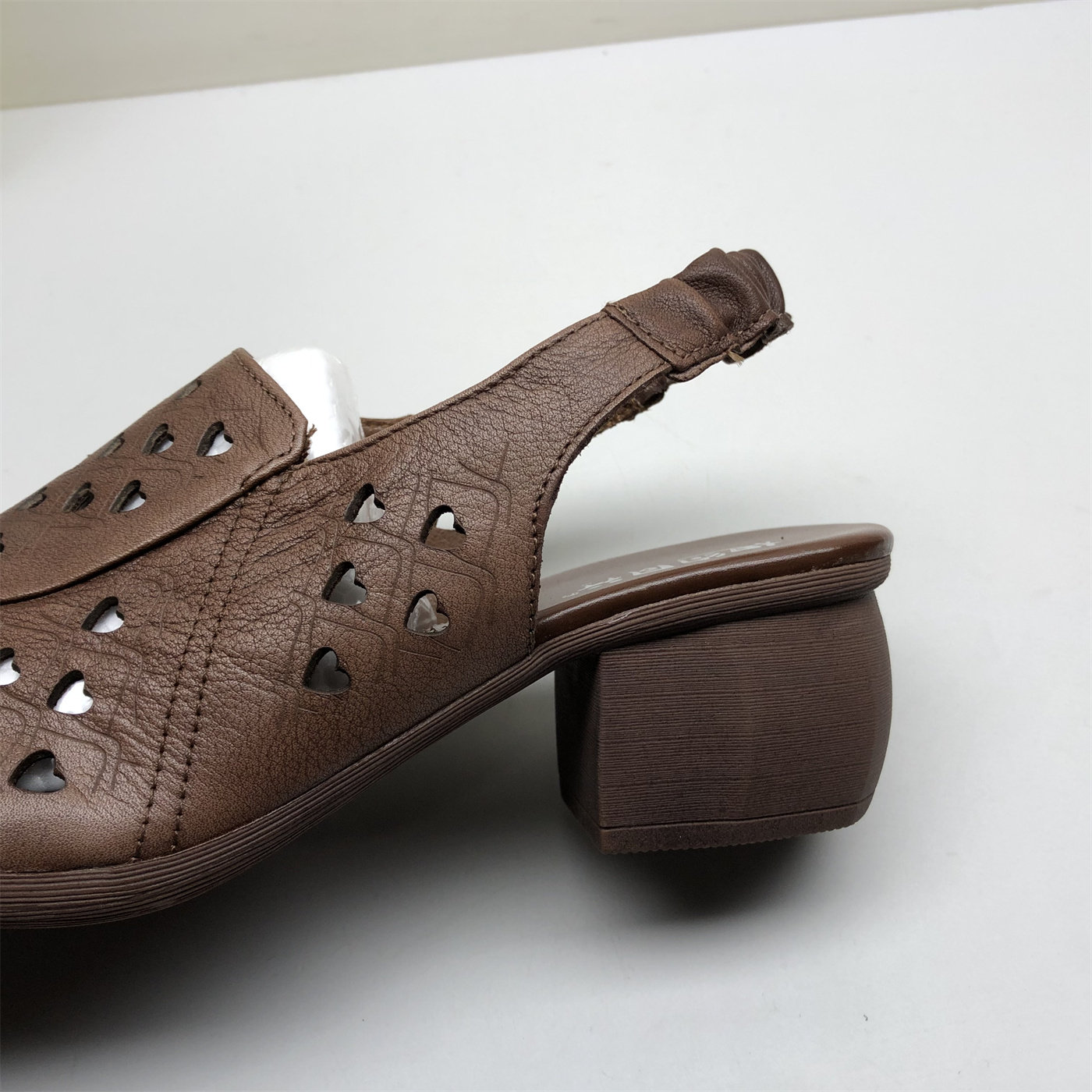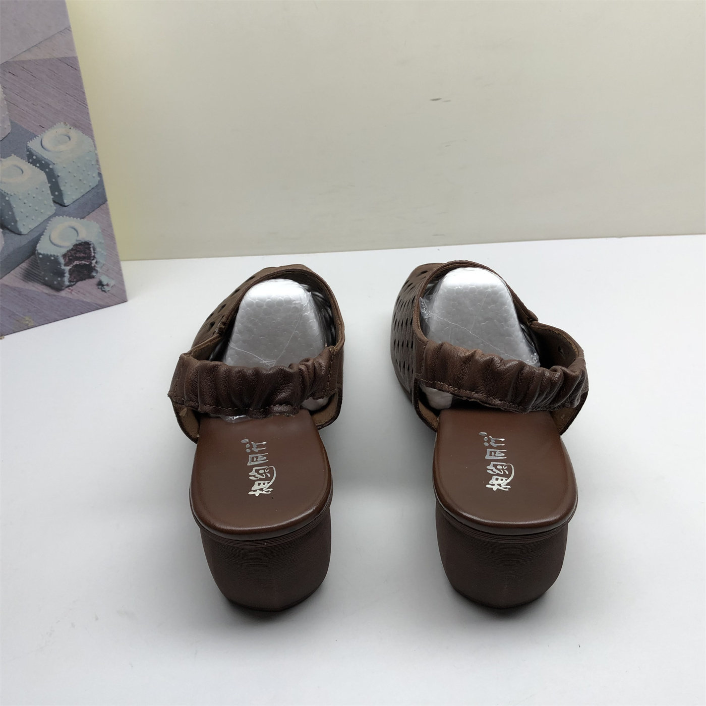 41码专柜撤柜真皮镂空洞洞鞋女夏季粗跟头层牛皮包头凉鞋软底舒适