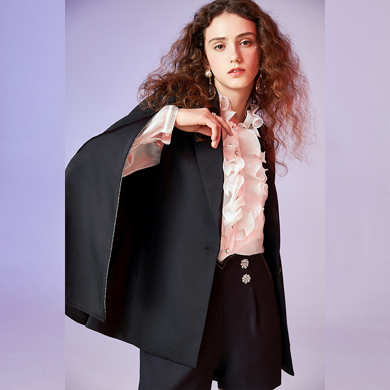 卡佛莲灿清仓国潮简约百搭气质类醋酸缎面黑色小西服外套女