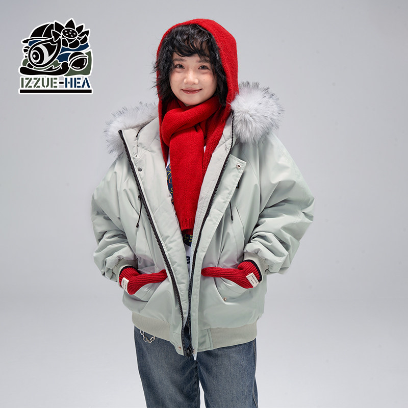 HEA x i.t izzue国潮大毛领连帽棉衣外套男女情侣款宽松保暖棉服