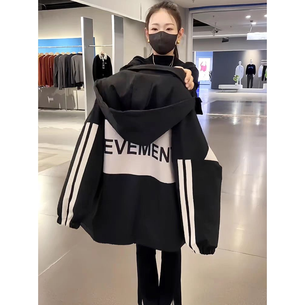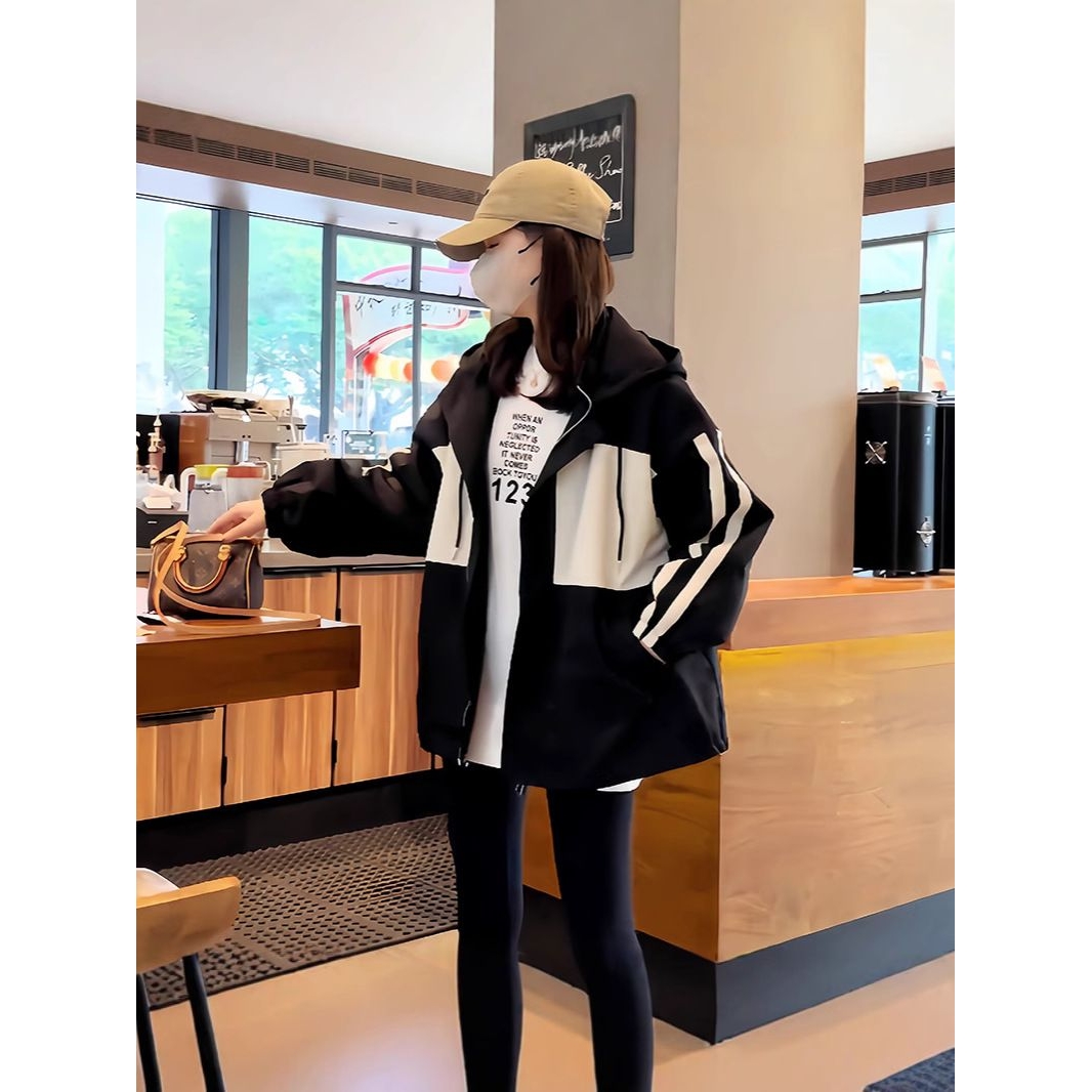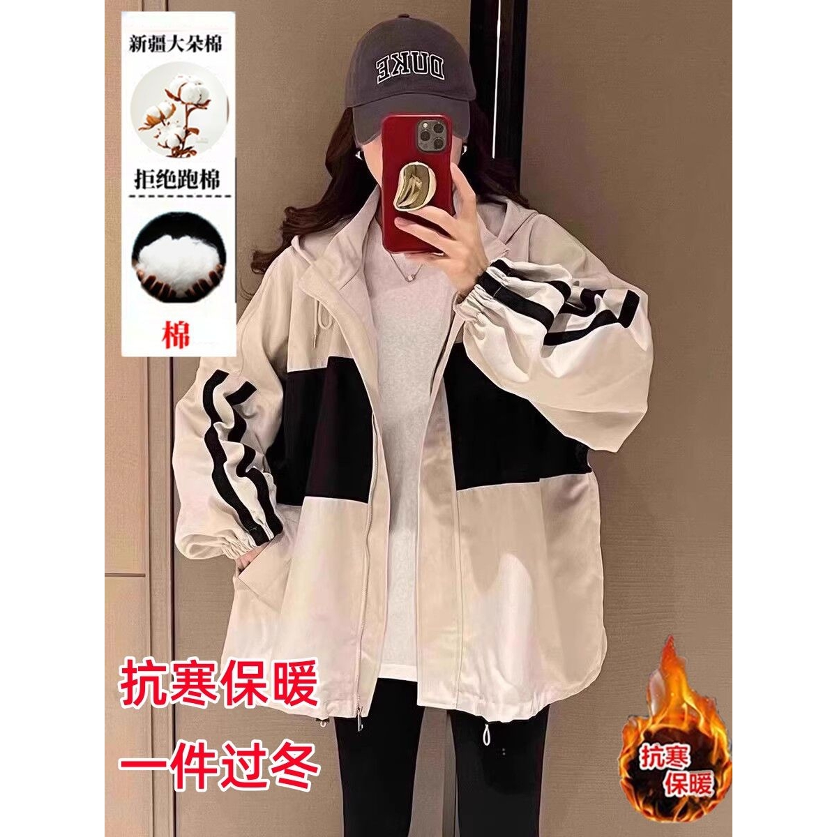 撞色连帽冲锋衣夹棉休闲外套女春秋冬新款二棉风衣夹克棒球服