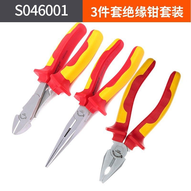 钢盾S046001绝缘老虎钳钢丝钳尖嘴钳双色柄6/8寸斜嘴钳3件套套装