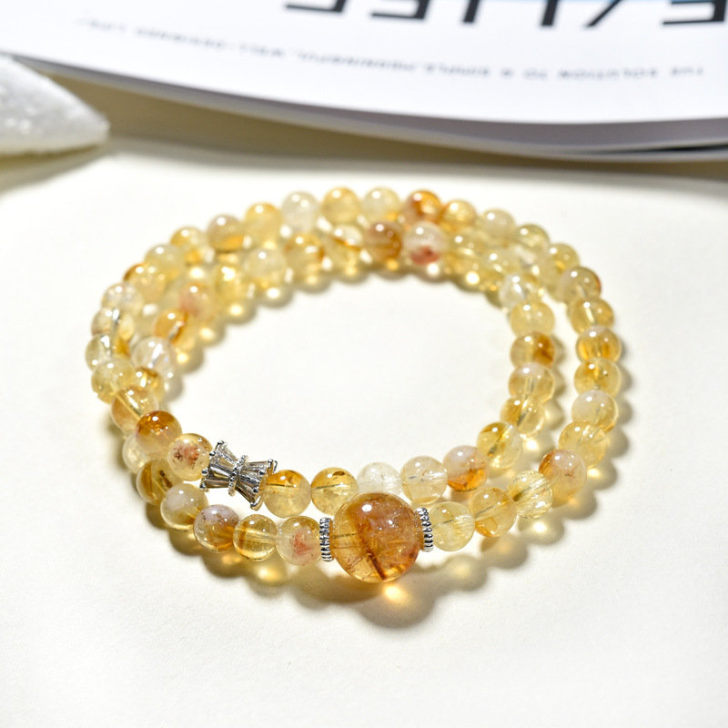 天然黄塔晶双圈手链 晶体通透+招财属性 招财旺运上手显白送闺蜜