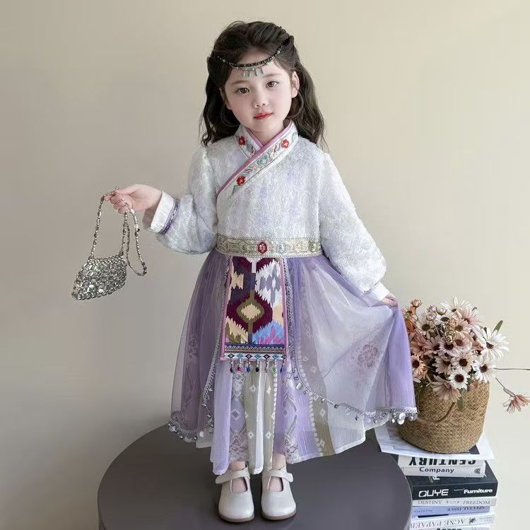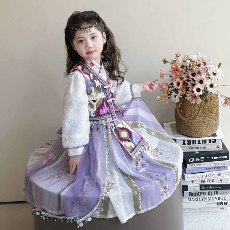 女童汉服新疆维吾尔连衣裙秋装儿童少数民族风服装哈萨克族西域风