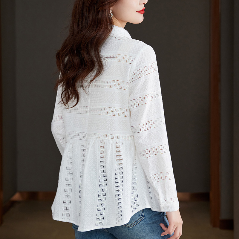 初影宽松通勤长袖纯棉拼接衬衫