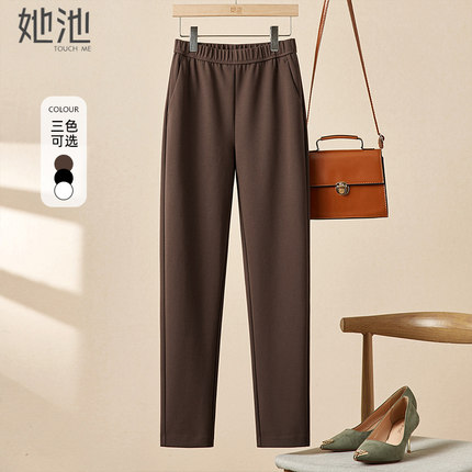她池高腰休闲裤2026春装新款女装时尚通勤弹力松紧腰九分哈伦裤
