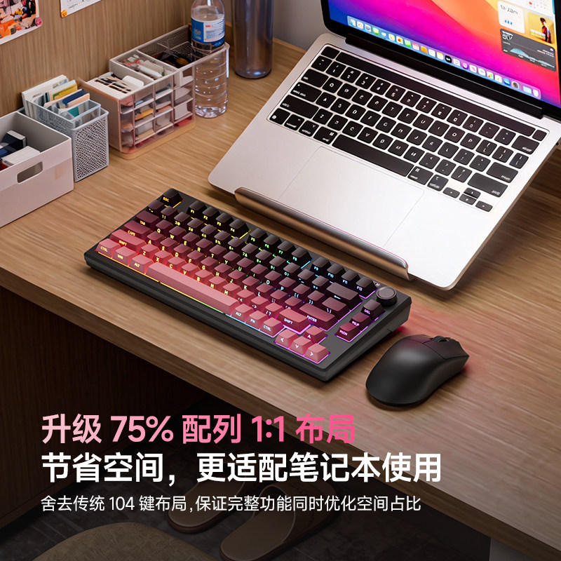 梦族Z75PRO小型机械手感有线键盘静音笔记本外接三模电竞游戏专用