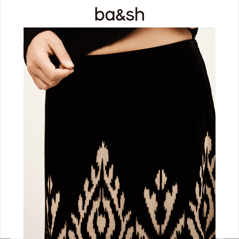 bash2025新款高级感丝绒纹复古民族风提花垂感半身裙长裙1H25ALPH
