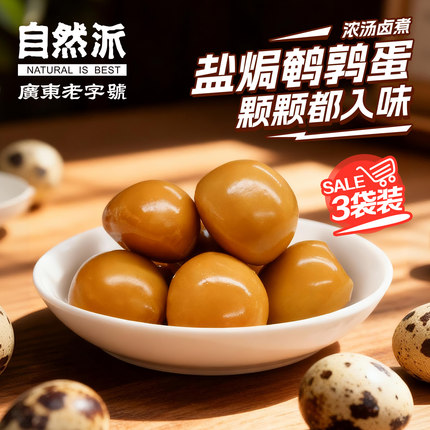 自然派鹌鹑蛋100gx3包盐焗卤蛋真空即食鸡蛋充饥小零食官方旗舰店