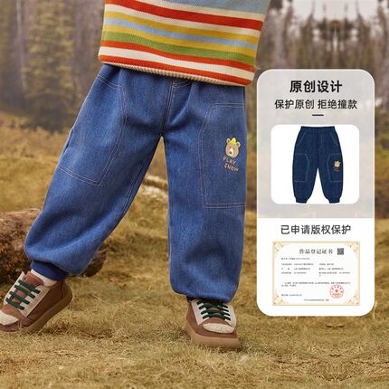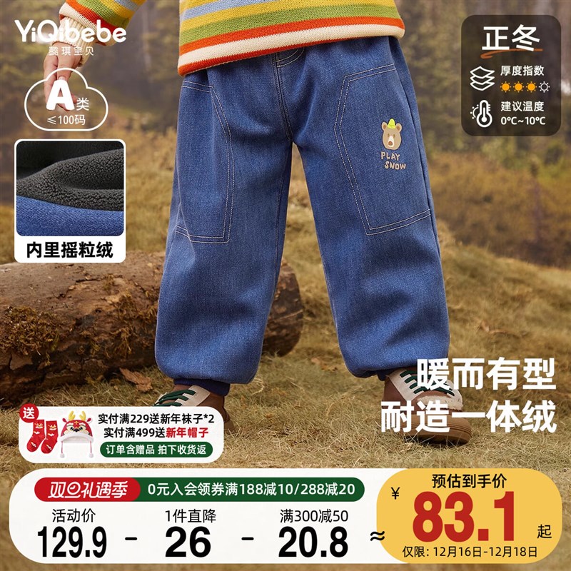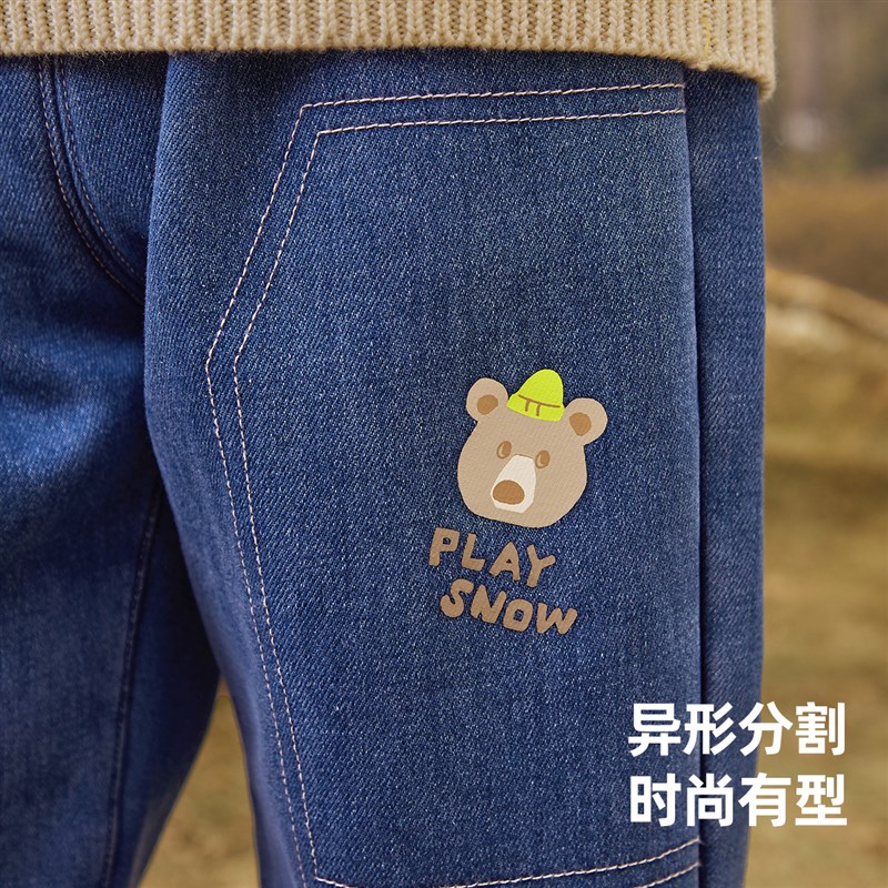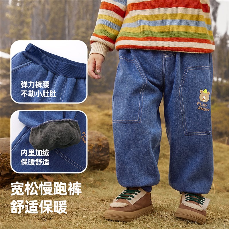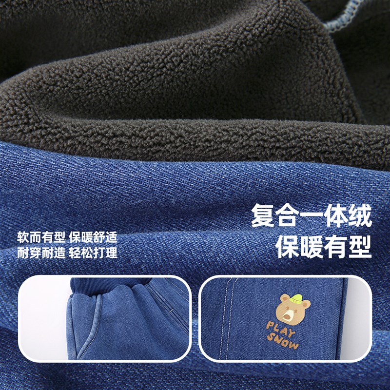 男童牛仔裤秋冬小宝宝加绒加厚裤子小童大屁屁裤冬款儿童童装秋冬