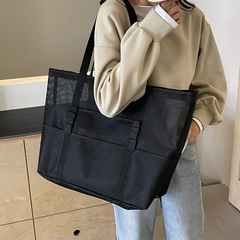 海边沙滩包收纳袋大容量户外游泳运动健身包镂空网眼包单肩托特包