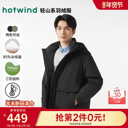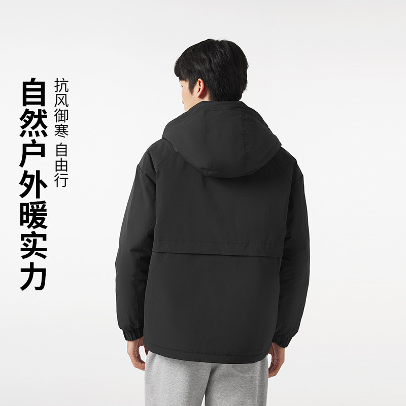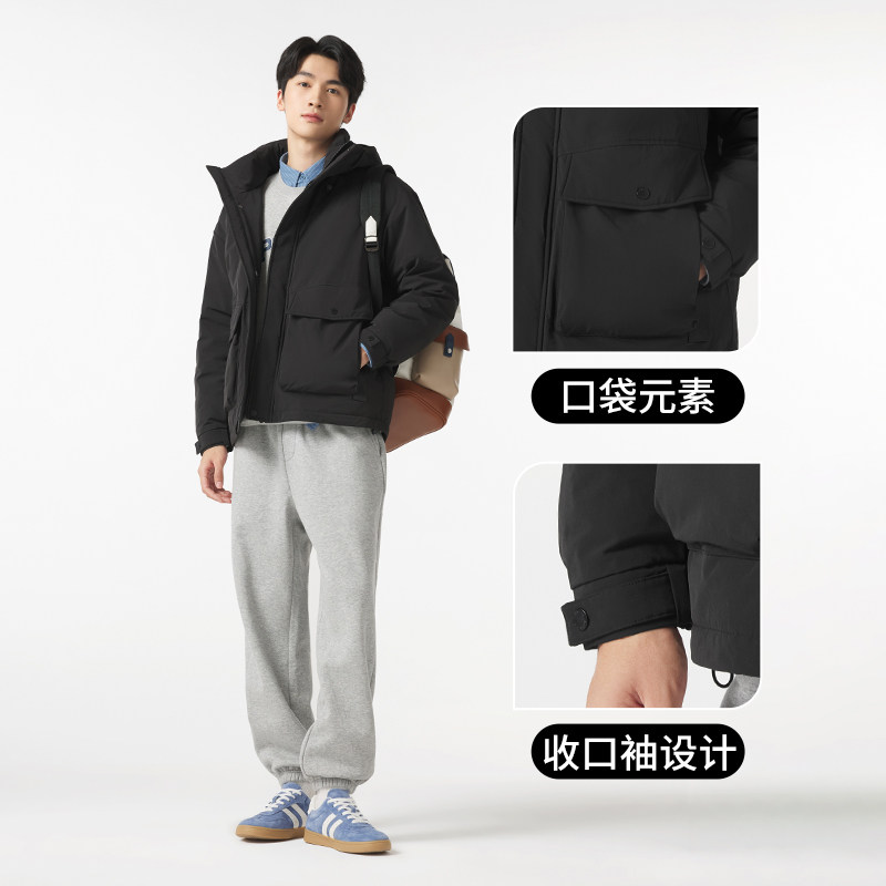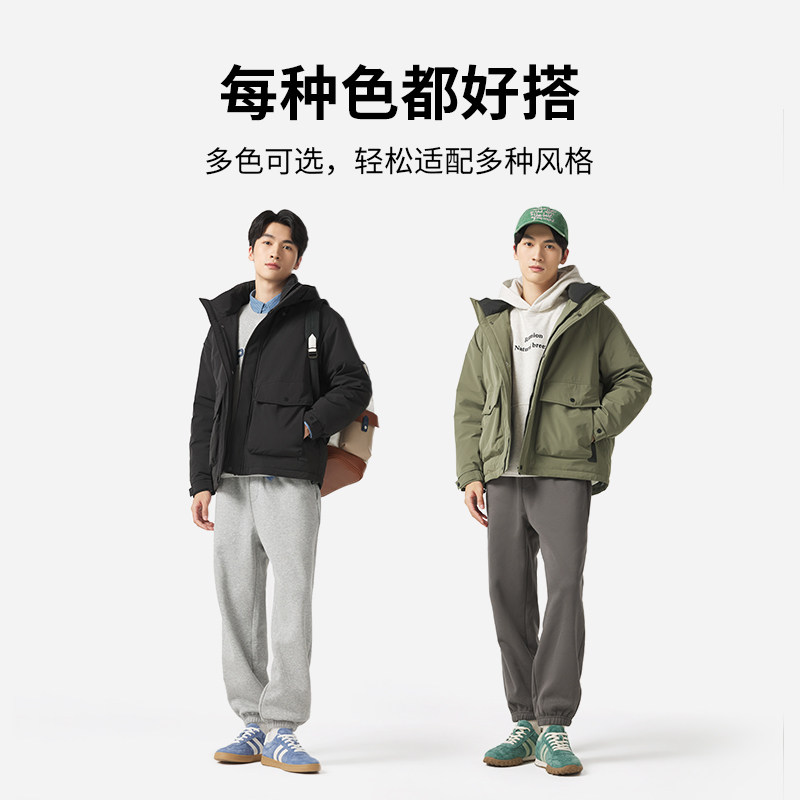 热风男士三防户外羽绒服2025年冬款轻休闲时尚保暖纯色连帽上衣