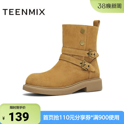 天美意冬新款商场同款厚底复古百搭短筒靴女西部靴BL771DZ5