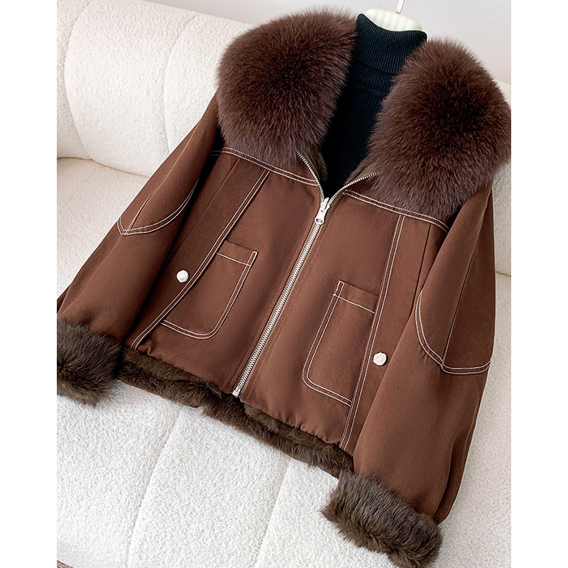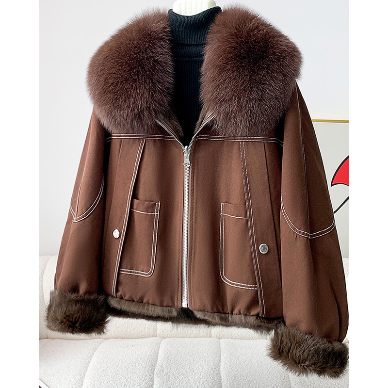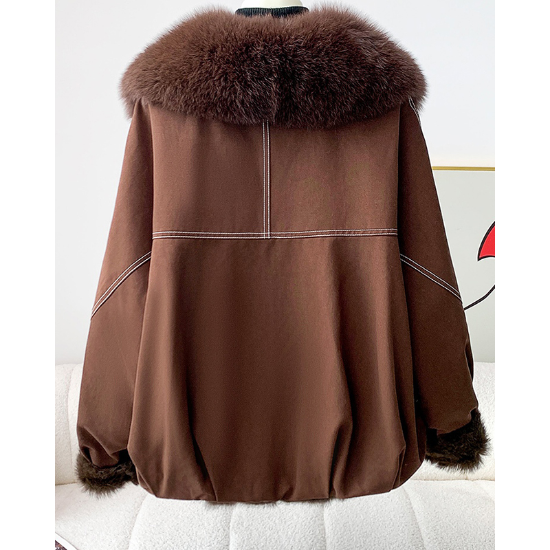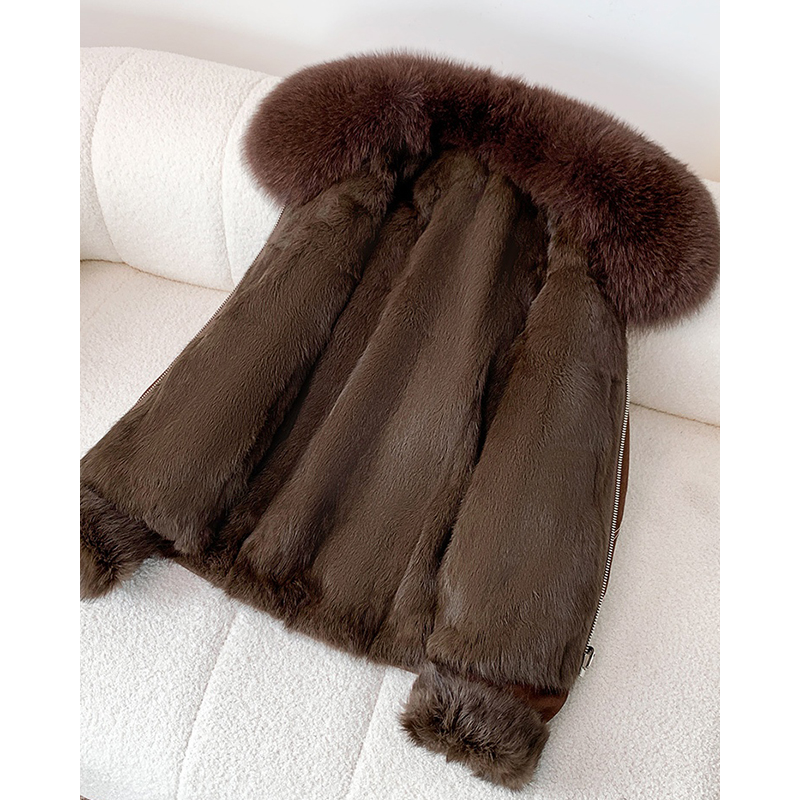 皮草外套女兔毛皮毛一体狐狸毛领时尚派克服保暖冬季大衣B1926
