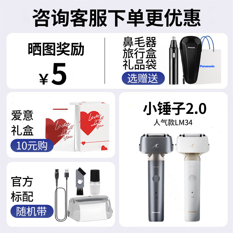 松下小锤子2.0电动剃须刀LM34男士往复式刮胡刀送男友新年礼物