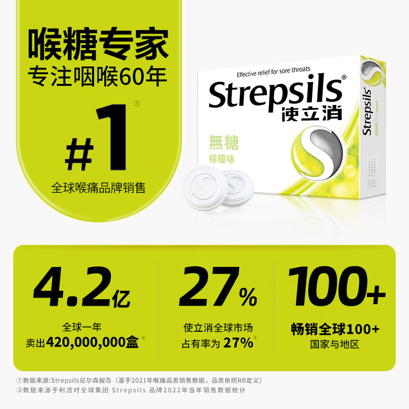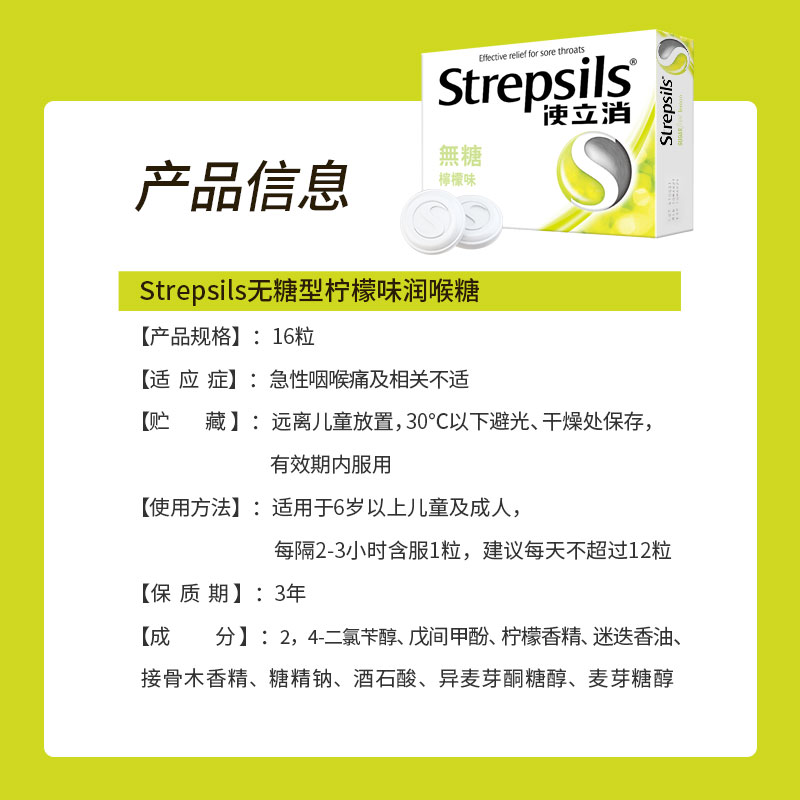 【自营】Strepsils使立消润喉糖止咳含片无糖柠檬教师护嗓润喉