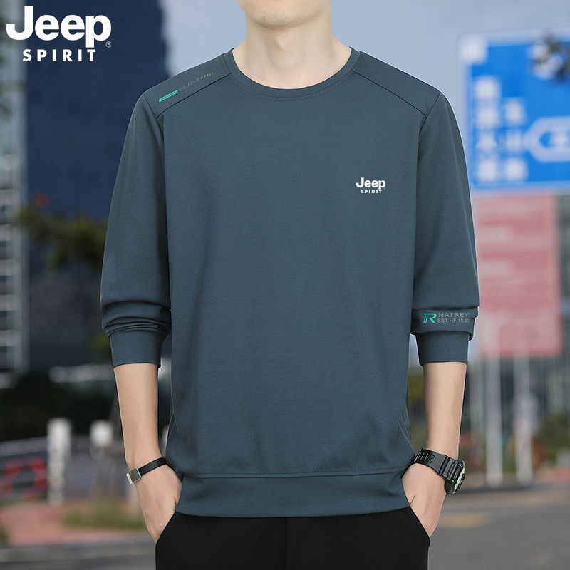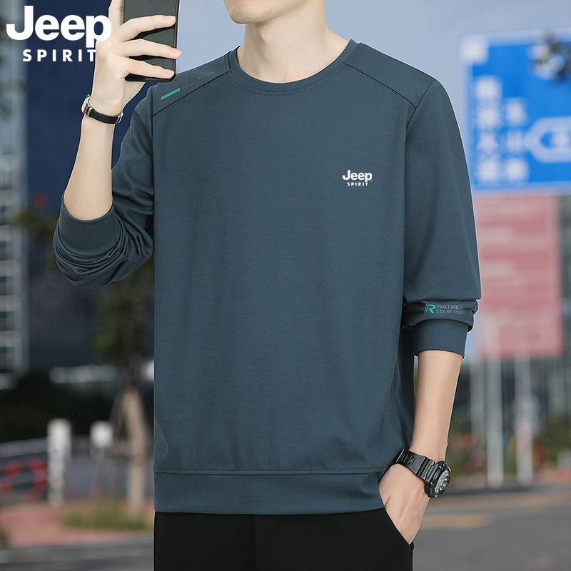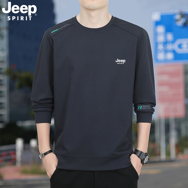 JEEP吉普纯棉卫衣男士2025新款春秋季圆领百搭宽松打底衫加绒上衣