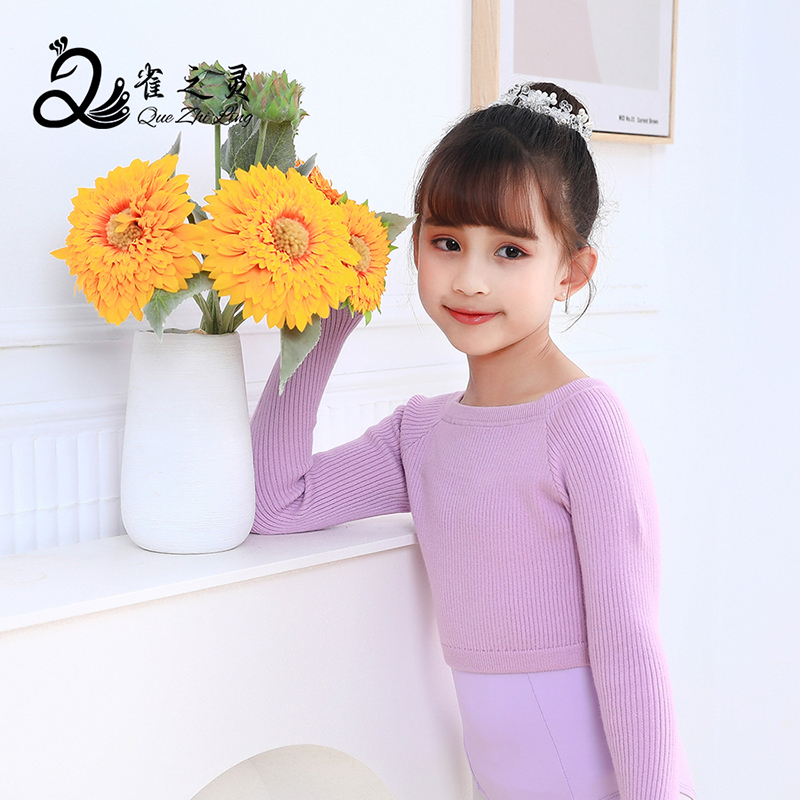 舞蹈服儿童女长袖套指舞蹈毛衣外套秋冬季中国舞芭蕾舞练功服上衣