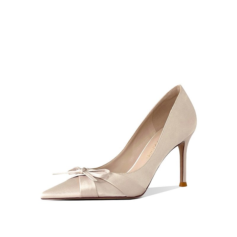 细跟蝴蝶结尖头浅口单鞋2025新款
