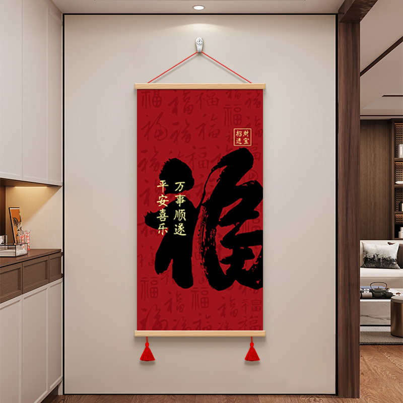 福字喜庆书法字画客厅进门玄关装饰画书房办公室茶室挂画寓意挂轴