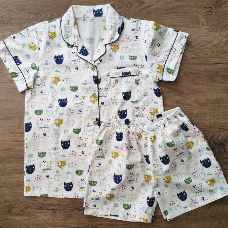 纯棉春夏季薄款全棉梭织女款可爱家居服短裤套装短袖睡衣两件套