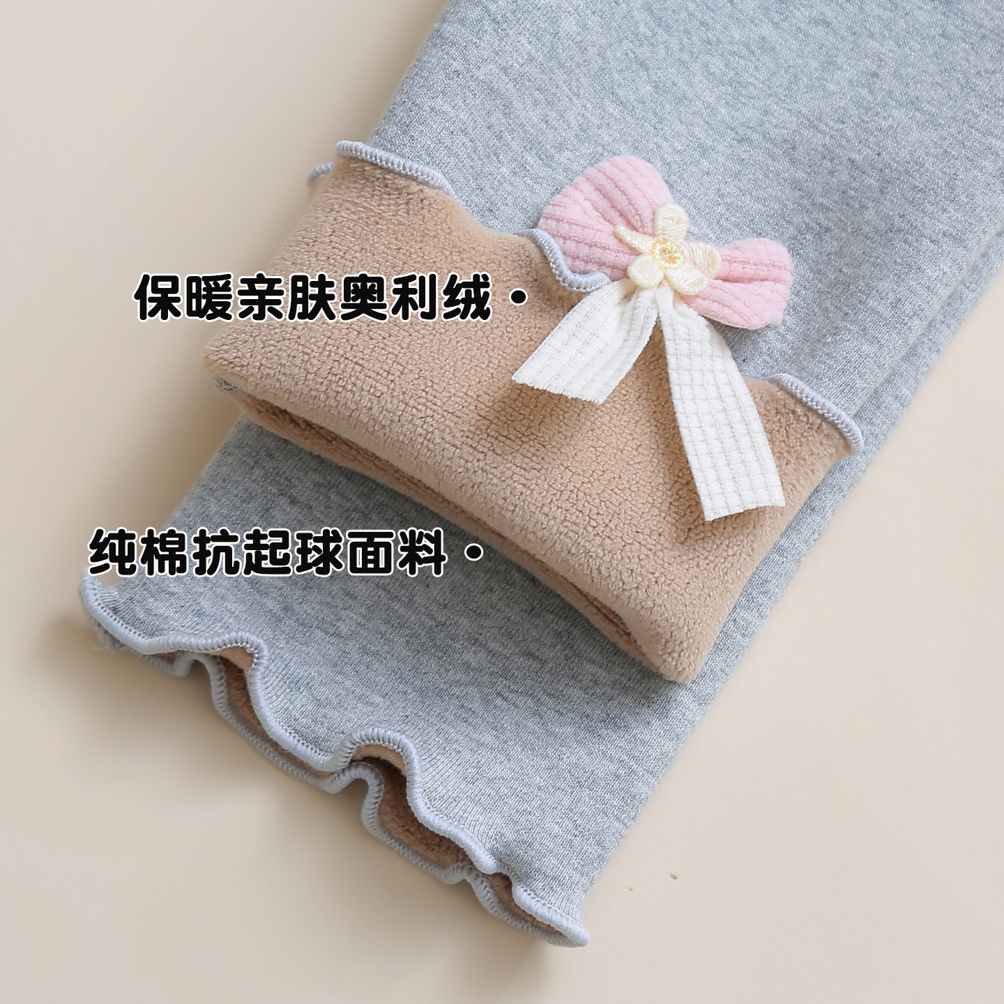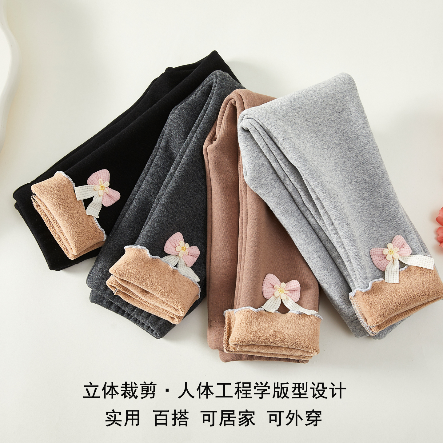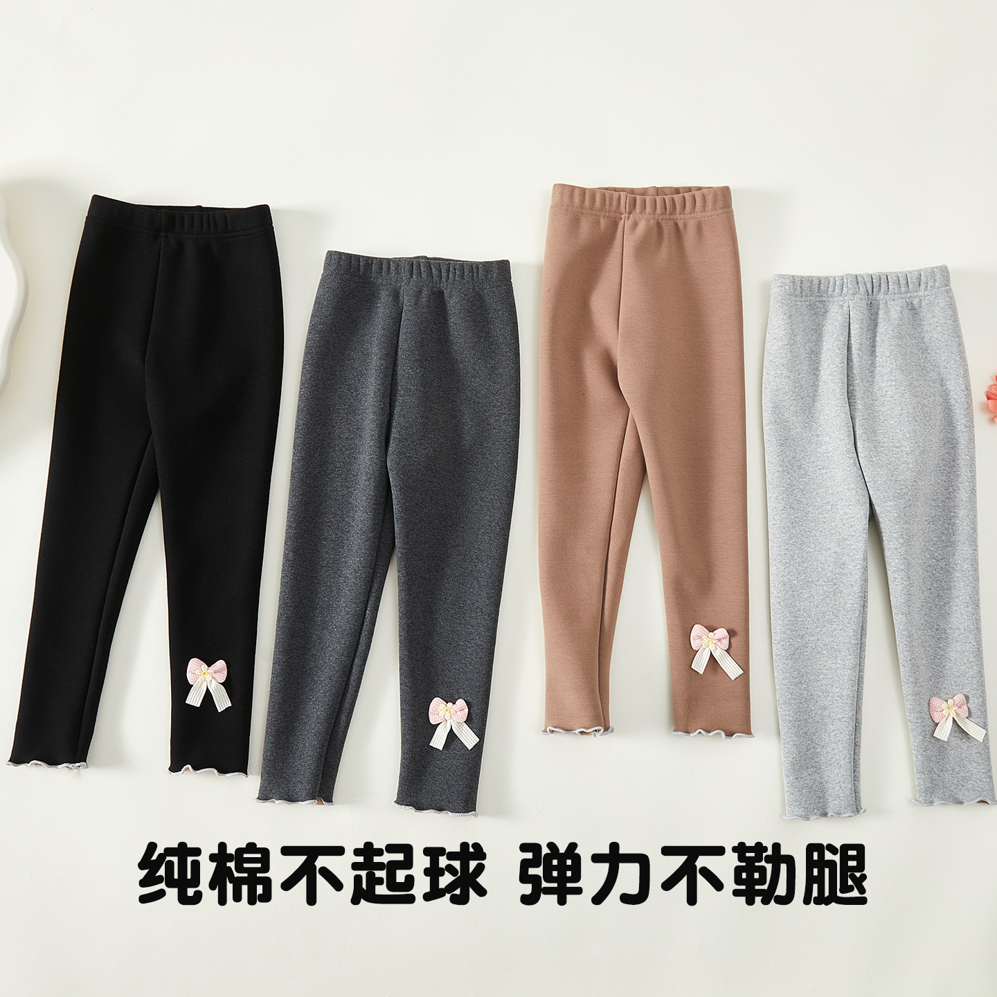 女童加绒打底裤纯棉儿童裤子女孩外穿冬季加厚宝宝保暖棉裤九分裤