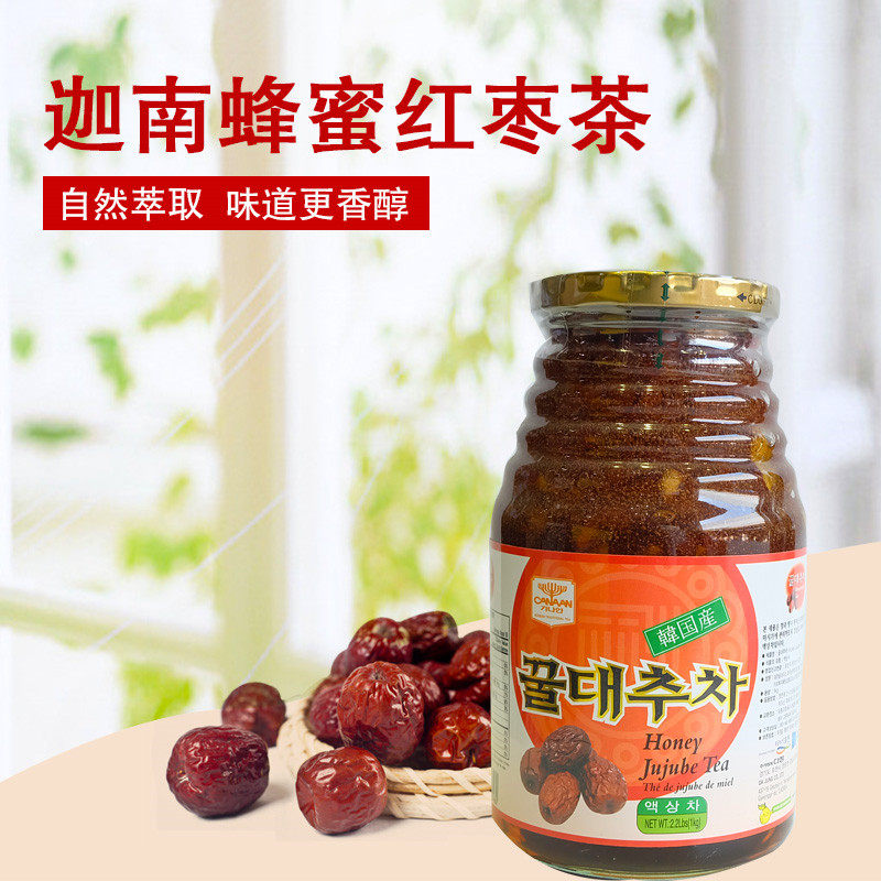韩国迦南蜂蜜柚子红枣生姜芦荟柠檬茶酱1kg瓶装冲调果肉果汁饮品