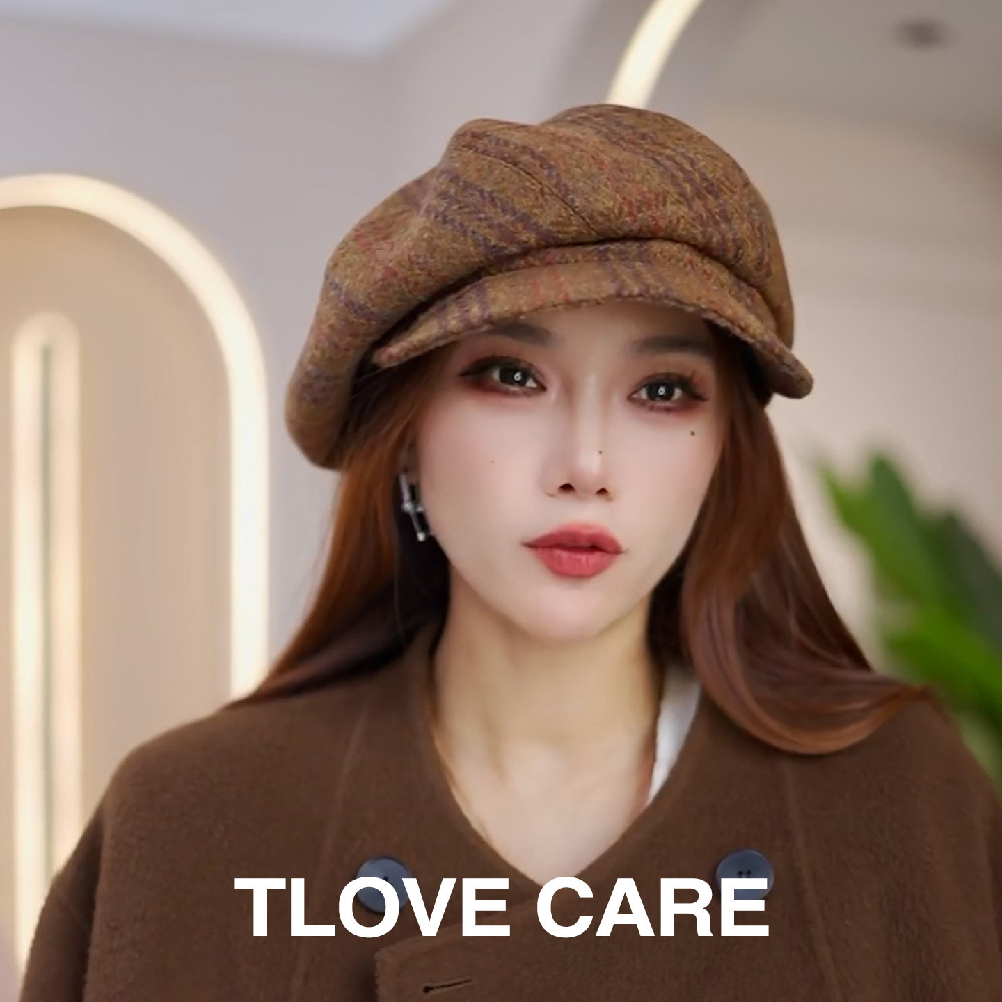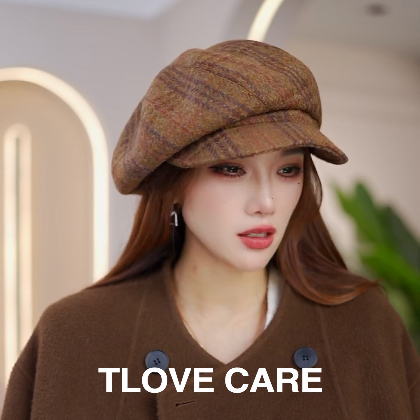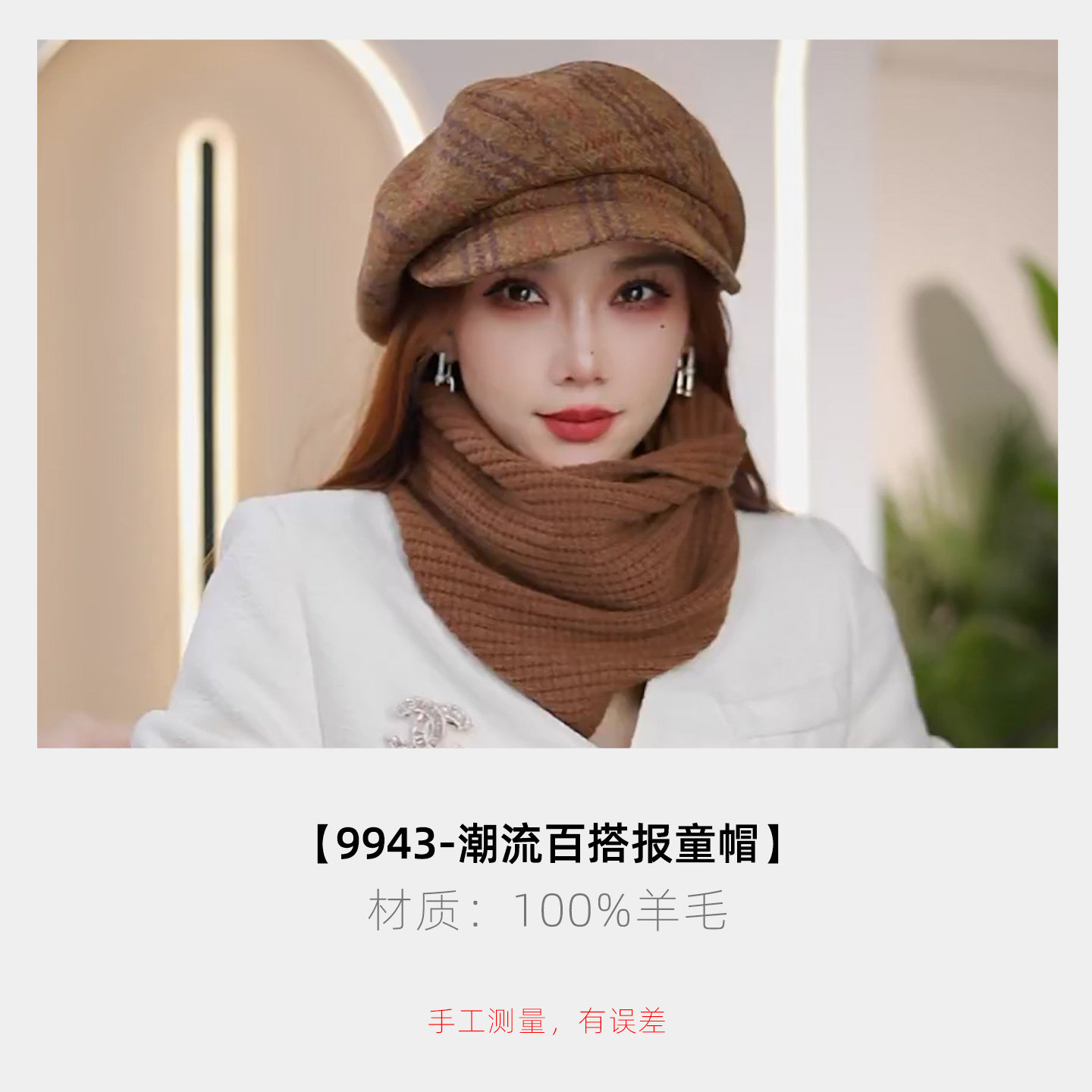 9943+英伦复古格纹八角帽女士季新款时尚百搭羊毛报童帽画家帽