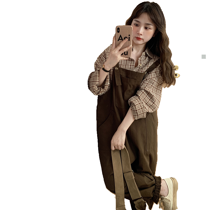 大码女装2025早秋休闲穿搭新品韩版衬衫+减龄宽松背带灯笼裤套装