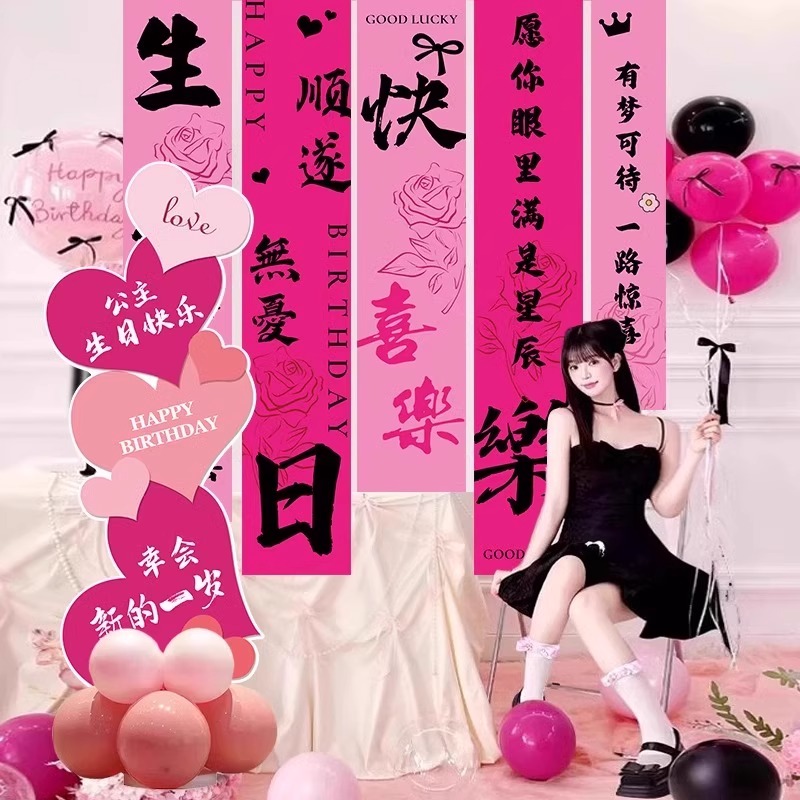 18岁女孩成人礼生日快乐迎宾牌场景布置装饰氛围道具KT板气球立柱