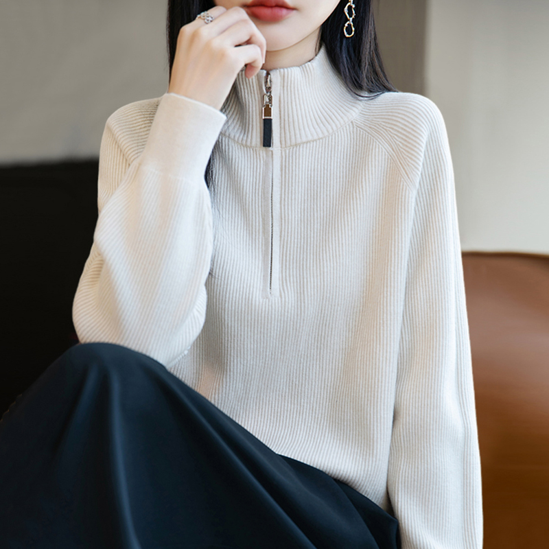 早秋拉链高领针织打底衫女2025新款春秋上衣洋气大码女装秋冬毛衣
