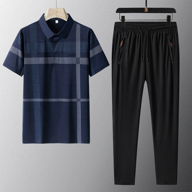 2024夏季新款衣服套装男冰丝男爸爸装父亲运动中老年人父亲节夏装