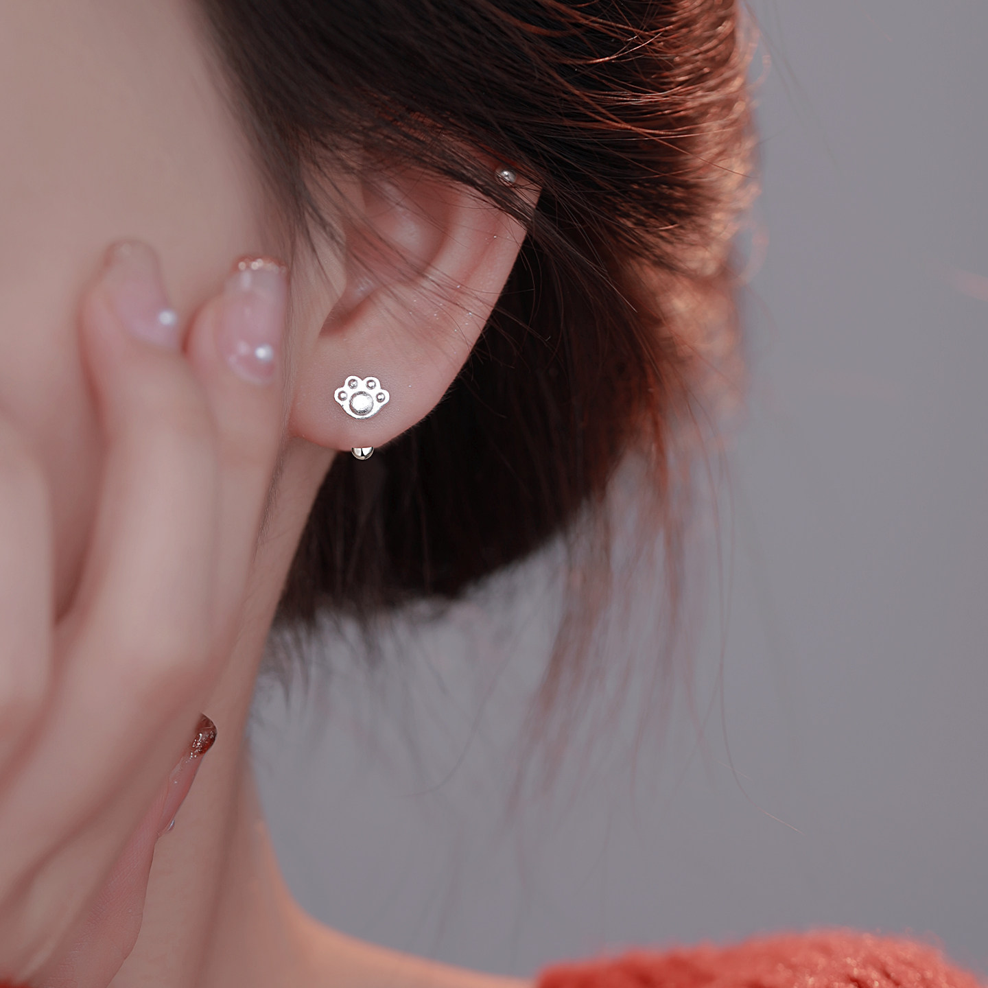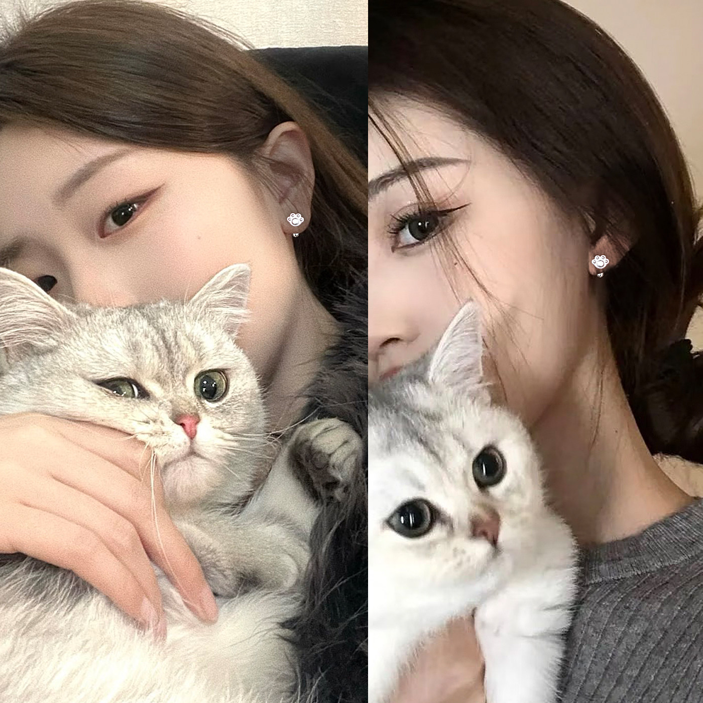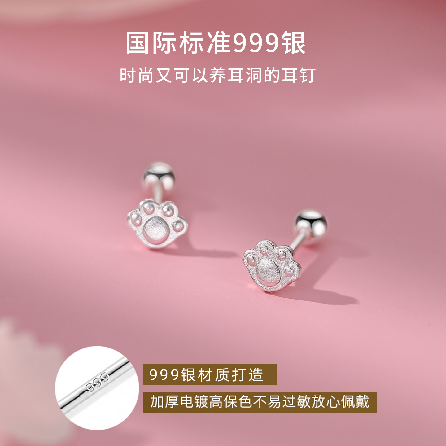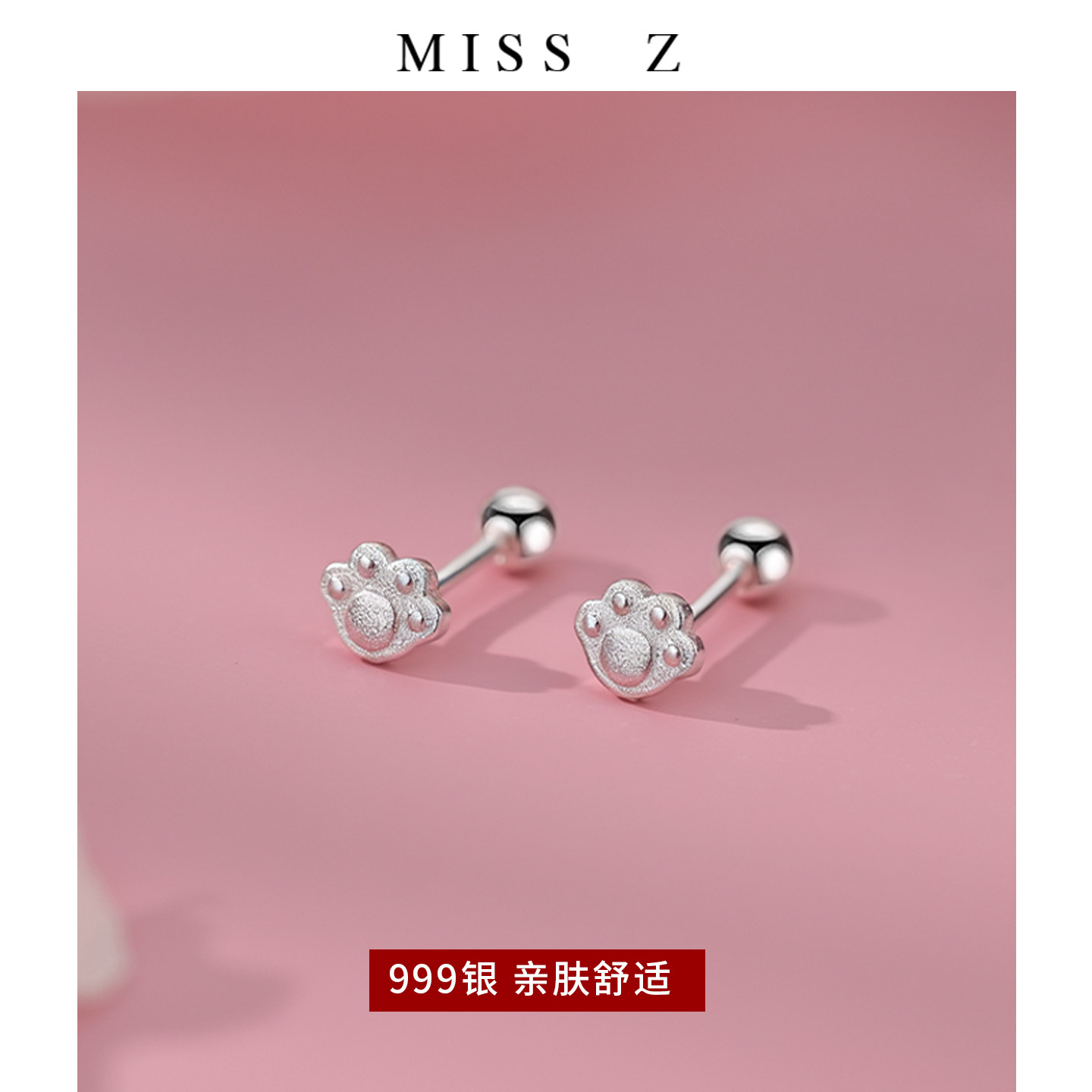 Z小姐999银可爱猫爪耳钉女2025爆款新款简约气质设计感养耳洞耳饰