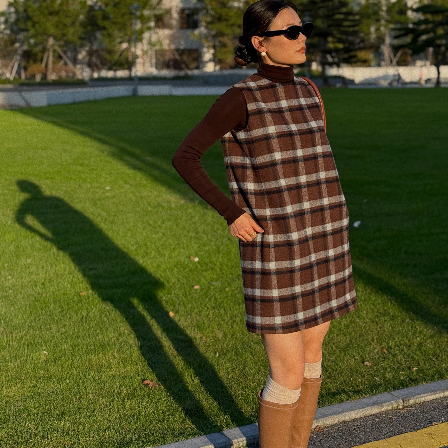 左方露复古格子无袖连衣裙羊毛呢穿搭背心裙小个子叠穿圆领裙子冬