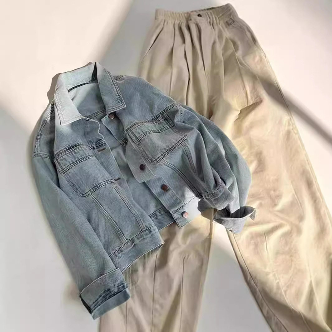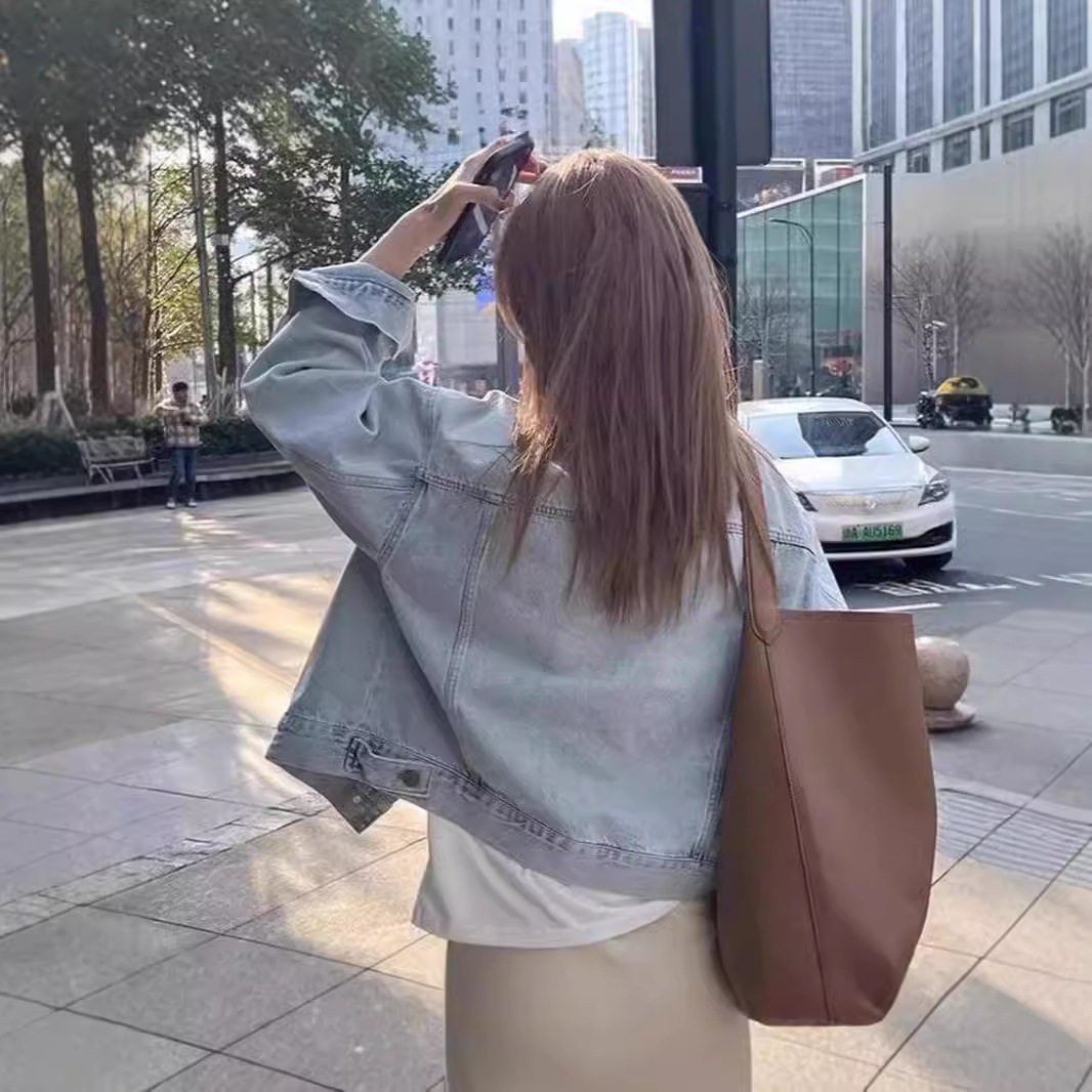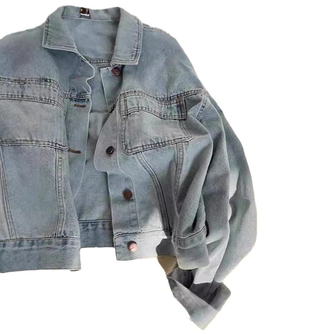 复古浅色水洗棉春秋短款牛仔外套