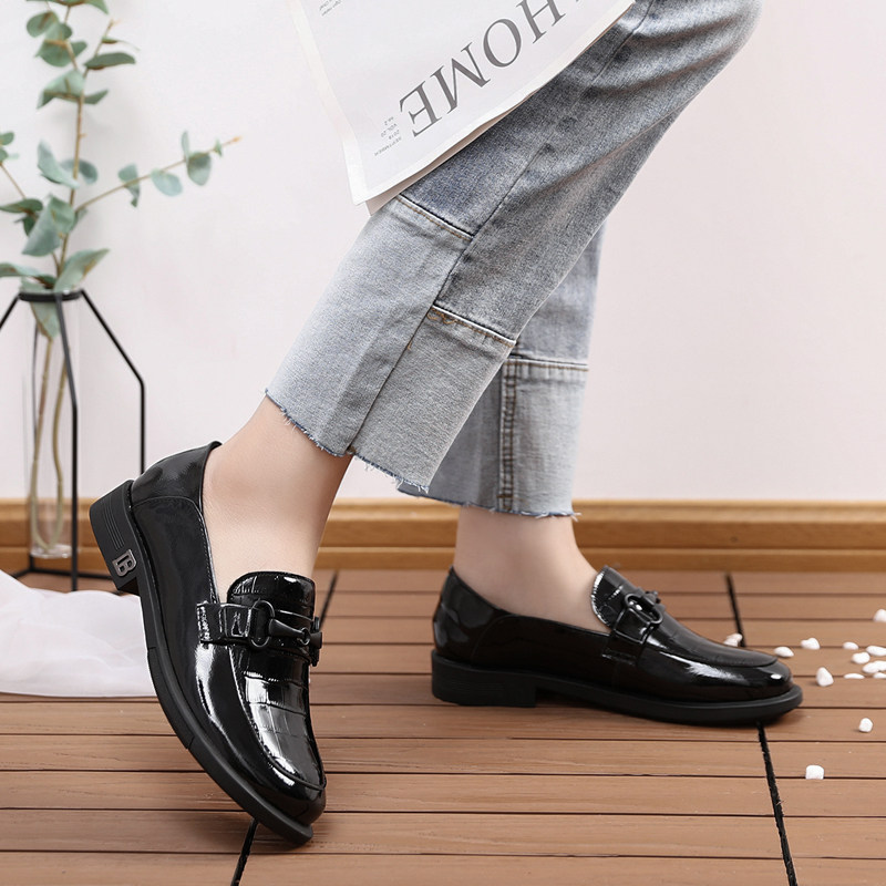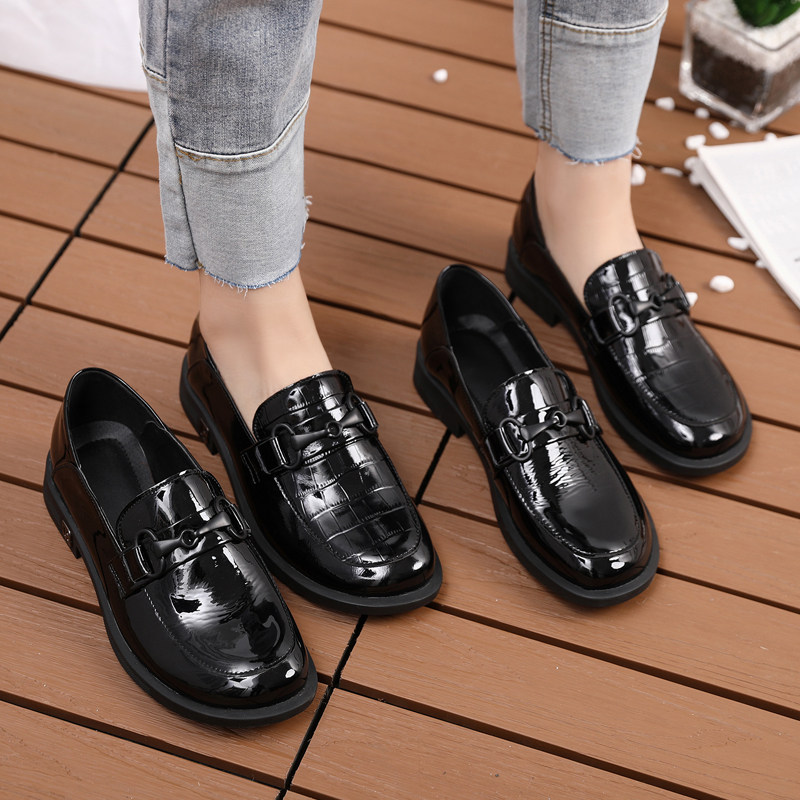 平底单鞋女漆皮乐福鞋大码软底鞋
