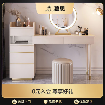 慕思集团旗下艾慕梳妆台岩板轻奢梳妆台柜一体简约小户型奶油风
