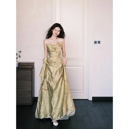 法式轻婚纱女新娘轻奢气质缎面小众高级感抹胸出门纱订婚晨袍礼服