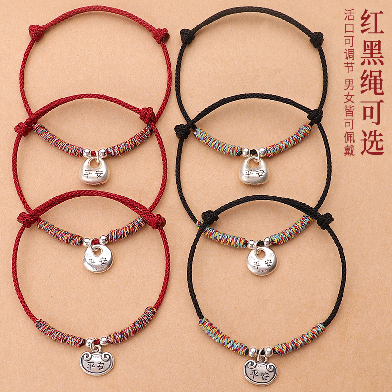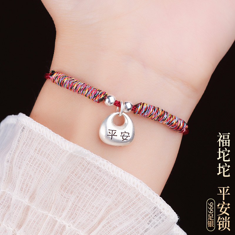 999纯银实心小胖福手链平安锁银坨坨成人足银本命年编织红手绳女