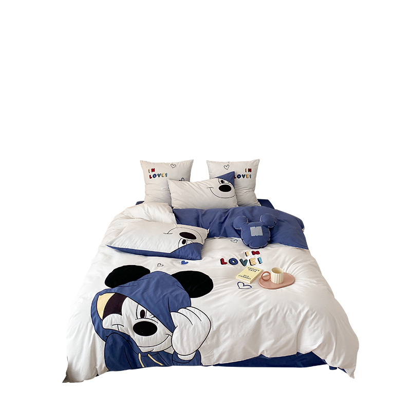 卡通风儿童款水洗棉n床单四件套全棉纯棉被套超柔裸睡可爱床上用