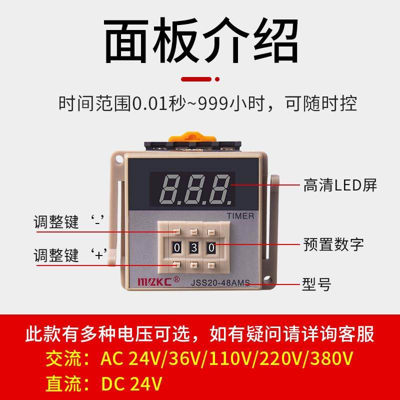 数显延时继电器JSS20-48AMS通电延时三位999秒99.9秒可调220V 24V