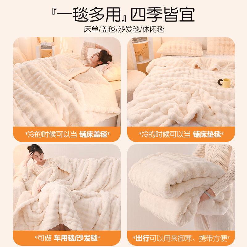 兔毛绒毛毯被子加厚冬季珊瑚加绒羊羔绒学生宿舍床上用沙发盖毯子